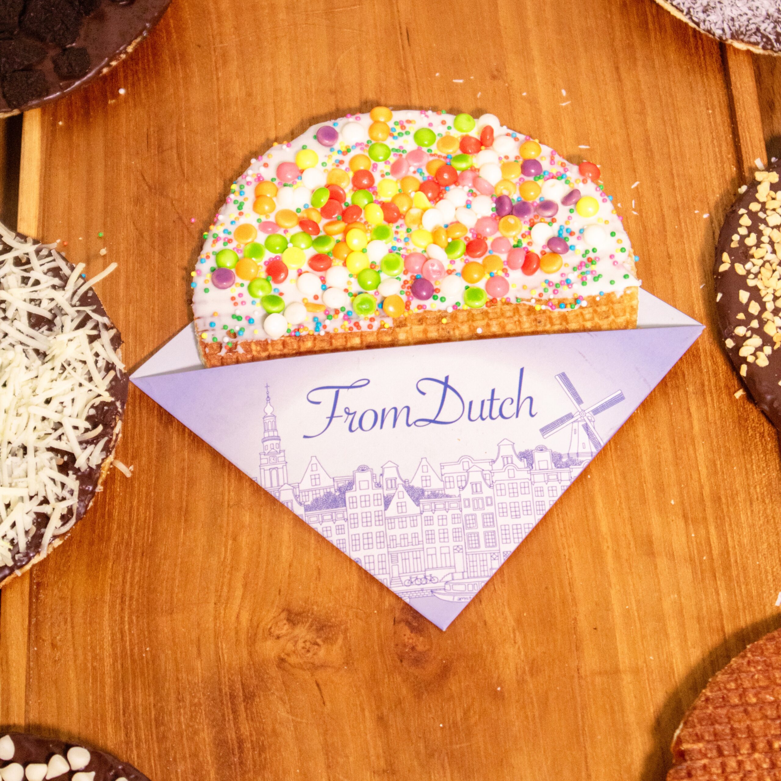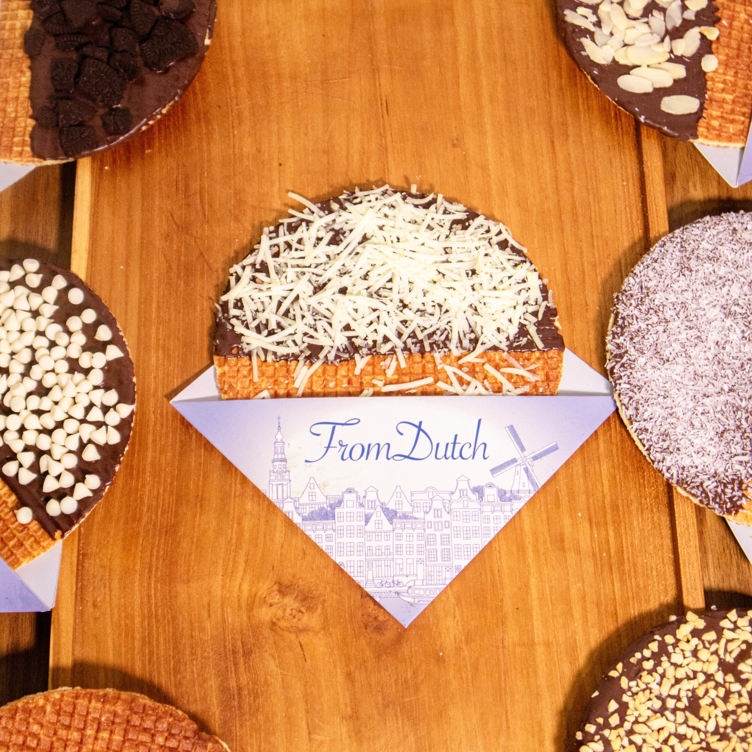 He works with a secret Dutch recipe, continuously tested by a Dutch community to make sure the taste, texture and quality meet absolute top standards – crisp on the outside, soft and gooey inside. Not too sweet, not too dry.